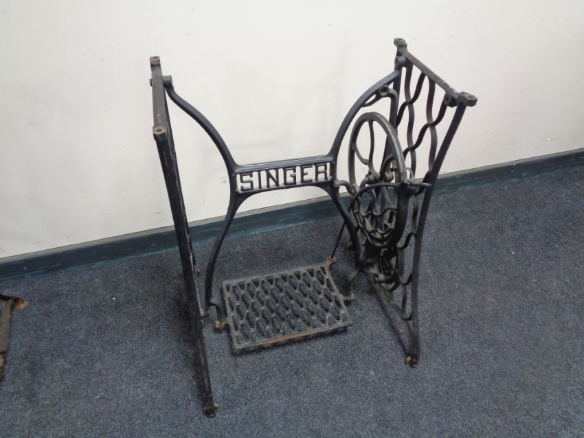 A cast iron Singer sewing machine treadle base.