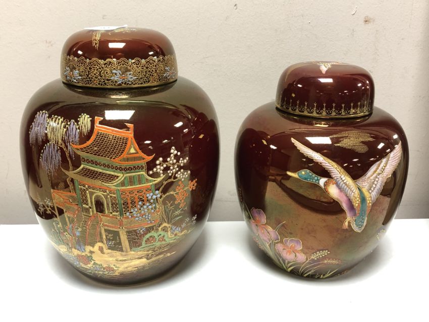 Two Carlton ware Rouge Royale lidded ginger jars.
