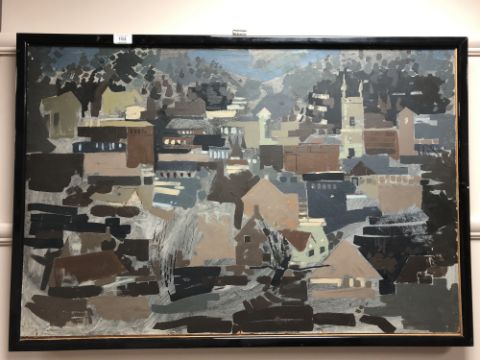 Continental school, abstract urban scene, oil on board