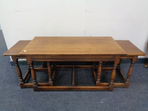 An oak coffee table fitted two beneath.