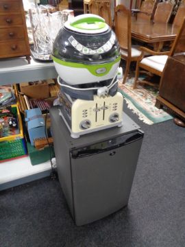 A Tefcold bench top fridge together with a Breville Acti-fryer and a Morphy Richards toaster.