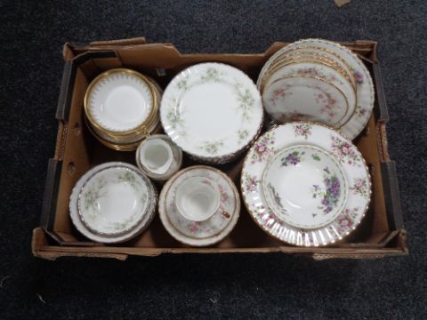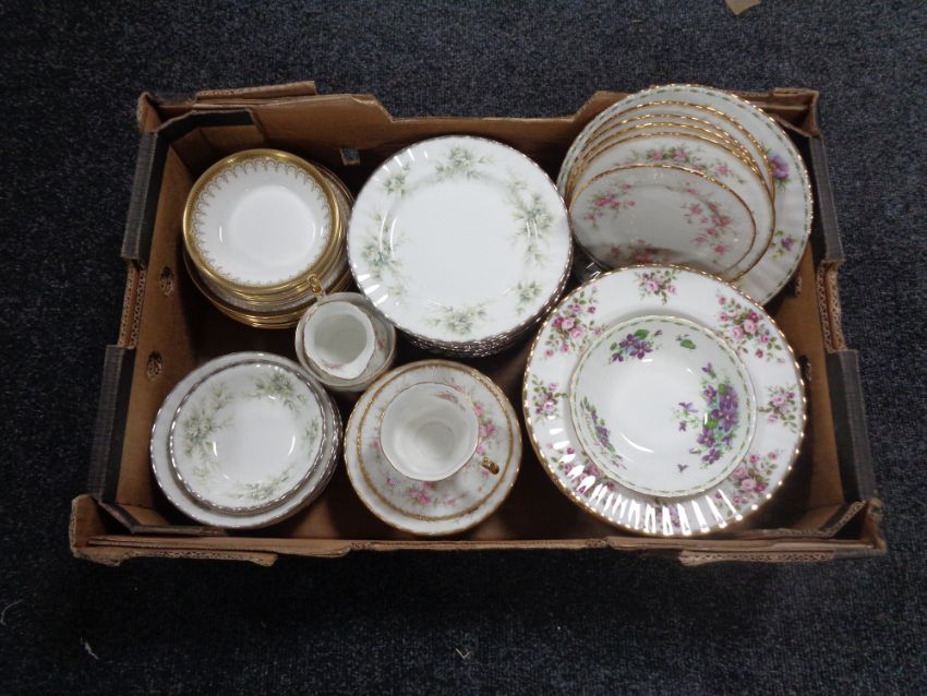 A box containing a quantity of miscellaneous Royal Albert and Paragon bone china tea and dinner ware.