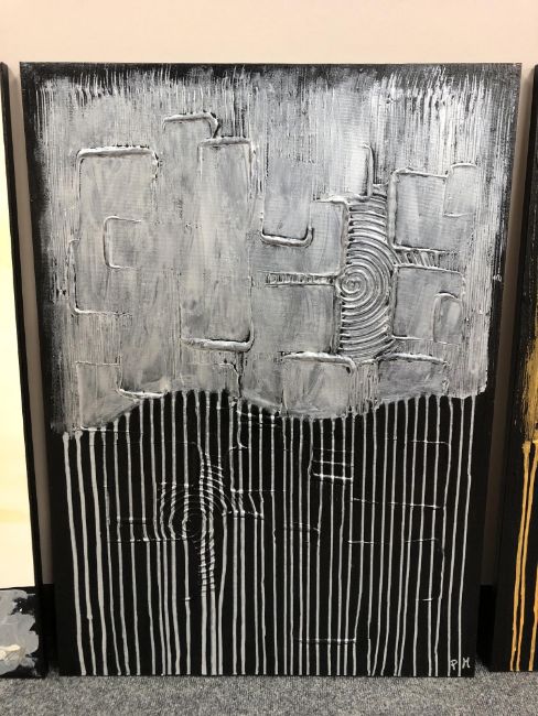 Piero Montanelli : Textured two tone abstract study (silver), oil on canvas, 90 cm by 65 cm, initialed and dated verso.