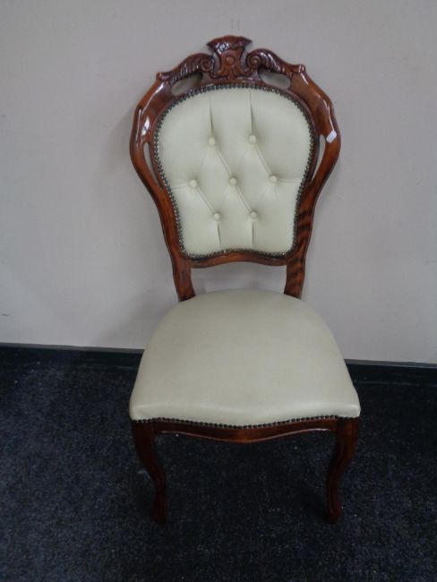 A stained beech framed Italianate dining chair upholstered in cream leather.
