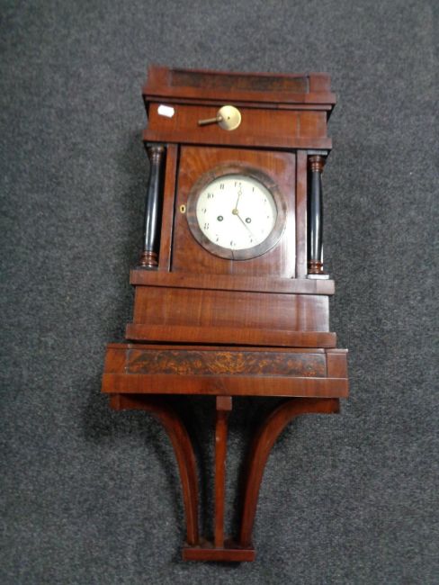 An early 20th century mahogany cased continental bracket clock with shelf.