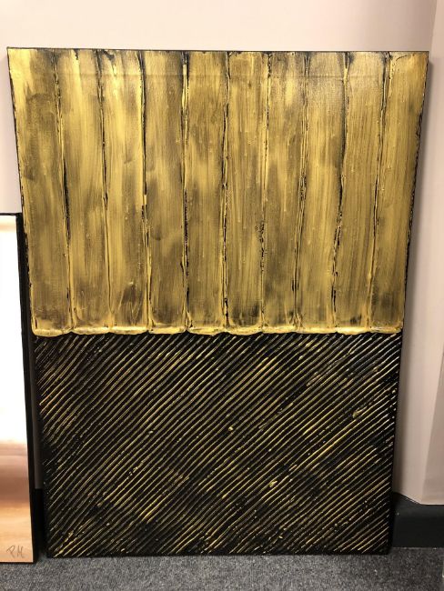 Piero Montanelli : Textured two tone abstract study, oil on canvas, 90 cm by 65 cm, initialed and dated verso.