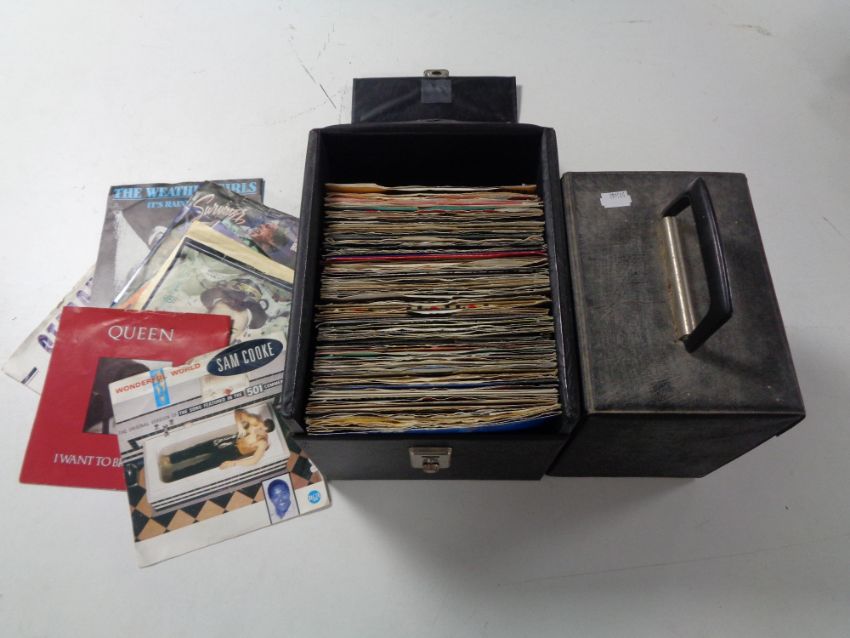 Two cases containing vinyl 45's to include Cliff Richard, Connie Francis, Rod Stewart, Julian Lennon etc.