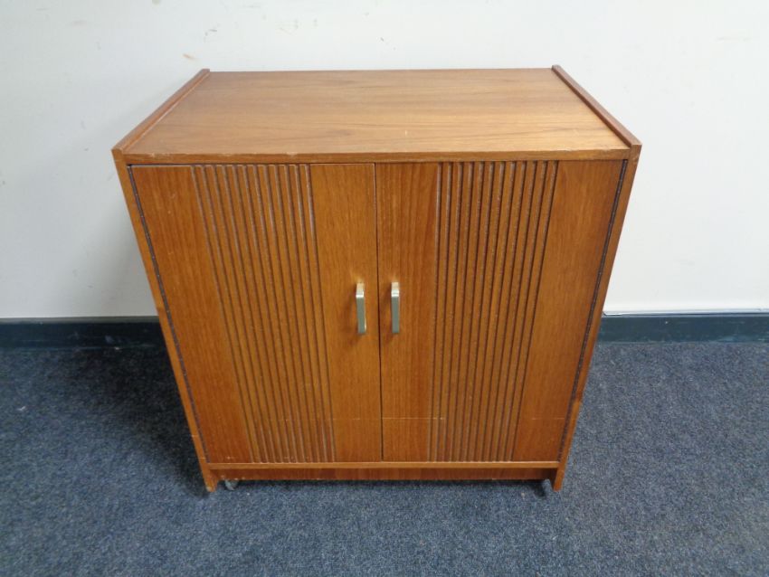 A mid 20th century teak double door record cabinet.