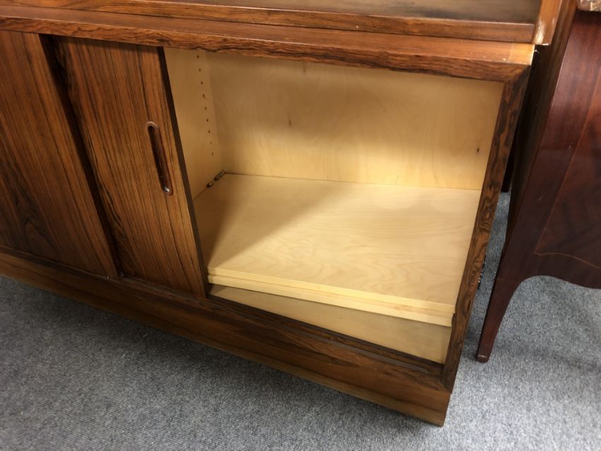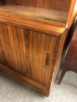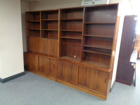 A mid century Danish twin section bookcase fitted bureau and cupboards beneath