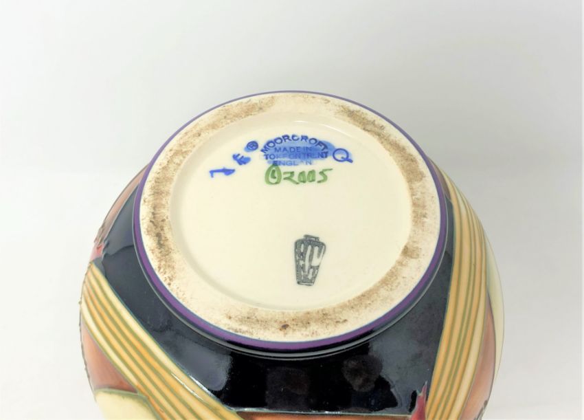 A modern Moorcroft baluster vase decorated with mushrooms on blue ground, height 19cm.