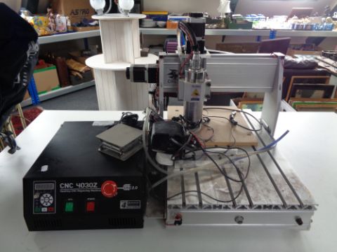 A CNC 4030Z desktop CNC engraving machine with control unit and accessories.