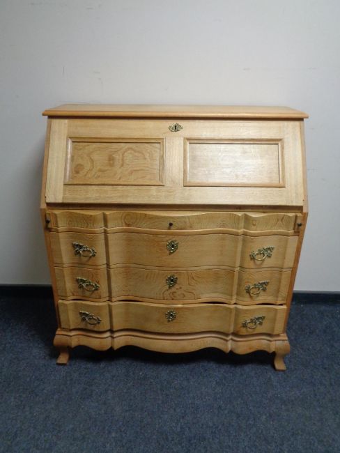 A continental oak serpentine fronted bureau.