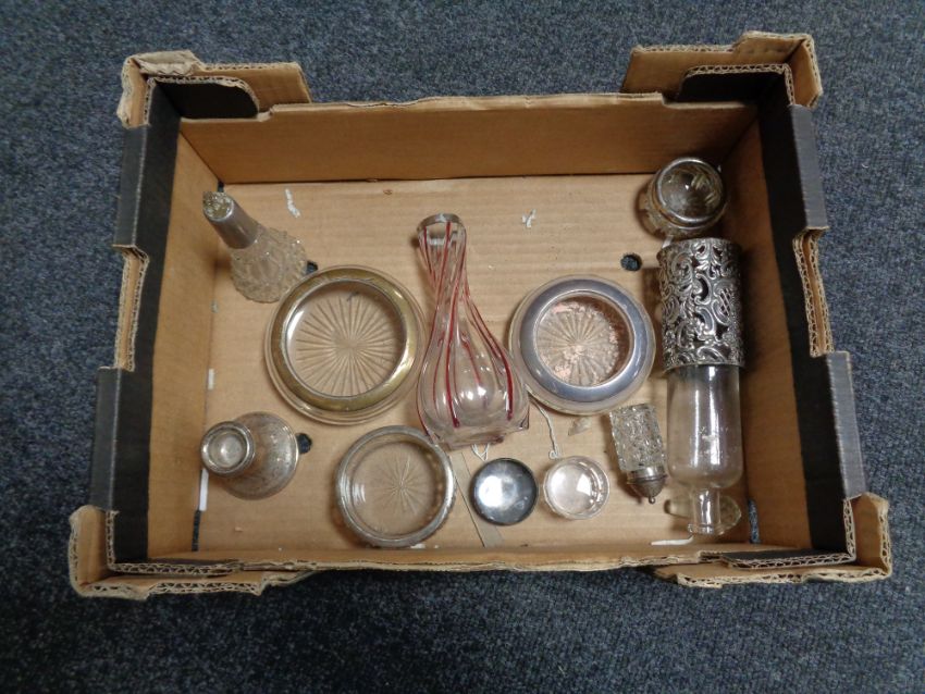 A box of various silver topped items