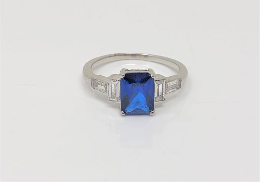 An Art Deco style sterling silver ring set with a blue stone, size N