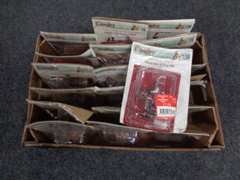 A box containing 18 Delprado cavalry of the Napoleonic Wars figures on horseback with magazines.