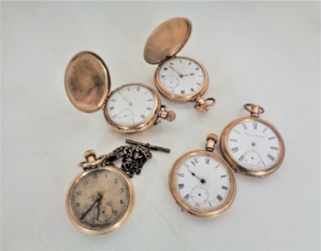 Five gold plated pocket watches including two full hunters. (4)