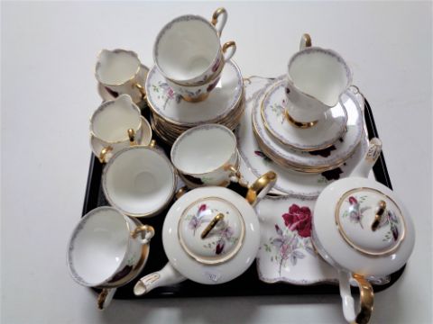 A tray of thirty six pieces of Royal Stafford Roses to Remember bone tea china