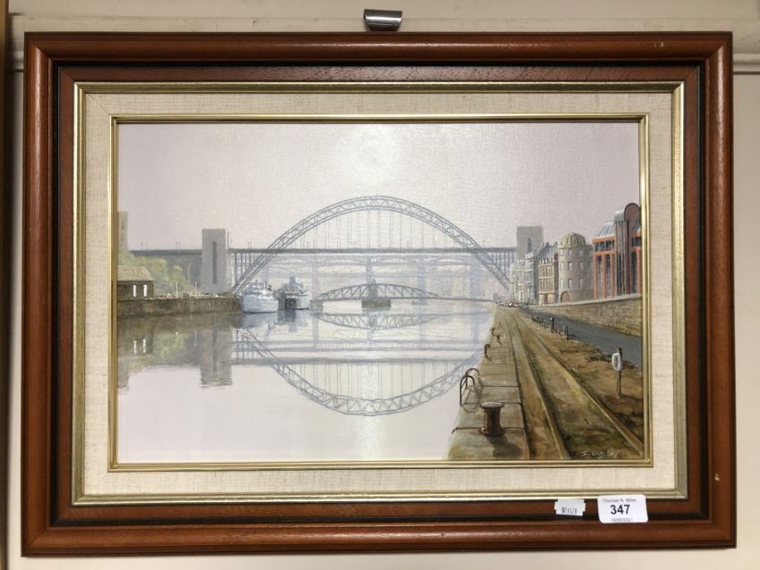 Ivan Lindsay, Newcastle Quayside, oil on Board, framed.