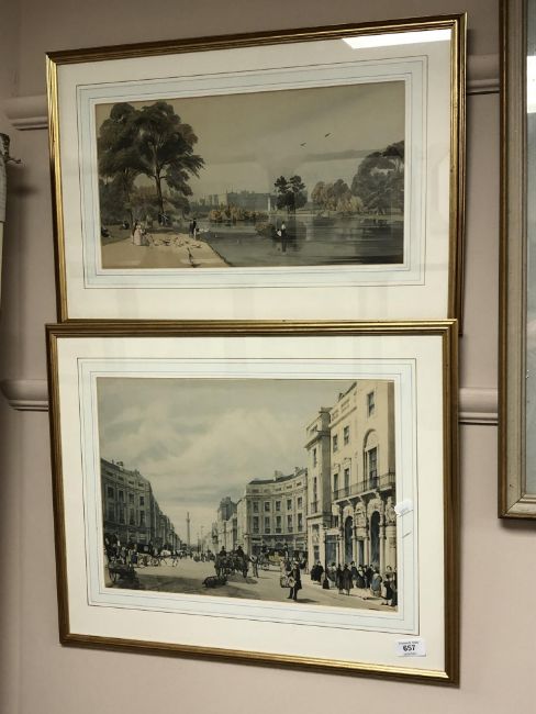 A gilt framed colour print depicting Regent Circus, 42 cm x 30 cm, together with a further topographical print, both parts framed. (2)