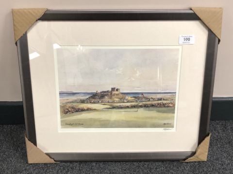 After Tom MacDonald : Bamburgh Golf Course, reproduction in colours, signed in pencil, 21 cm by 30 cm, framed.