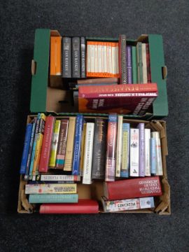 Two boxes containing hardback and paperback books to include Penguin Sherlock Holmes Collection, Folio Society Volumes, Reference etc.