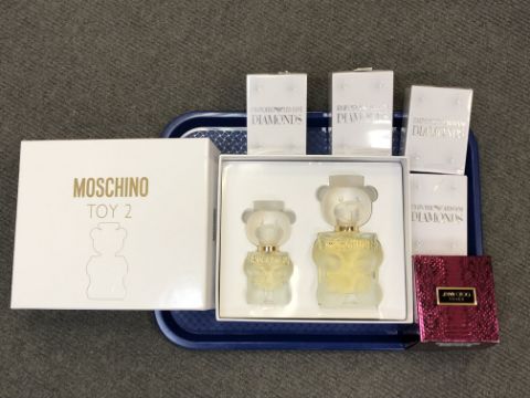 A Moschino Toy 2 two bottle eau de parfum set (opened), a Jimmy Choo Fever boxed eau de parfum 60ml (opened) and four Emporio Armani Diamonds 50ml eau de parfum in boxes (three sealed in wrapping, one opened). (6)