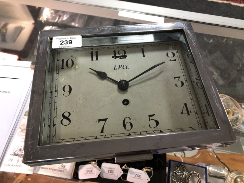 A 1930's chrome framed London Power Co. industrial clock with key, by repute from Battersea Power Station