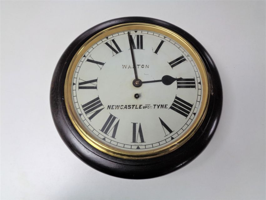 An early 20th century circular wall timepiece, later signed Walton, Newcastle upon Tyne