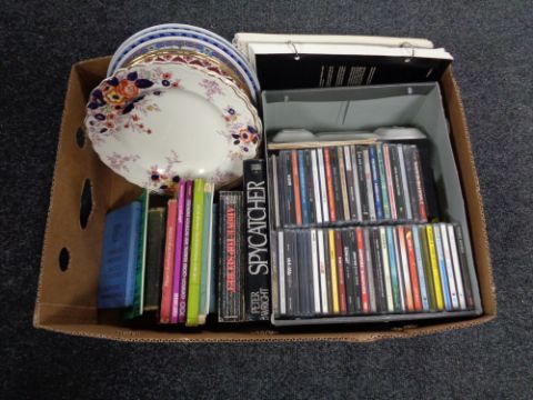 A box containing miscellaneous to include decorative wall plates, assorted books, CDs etc.
