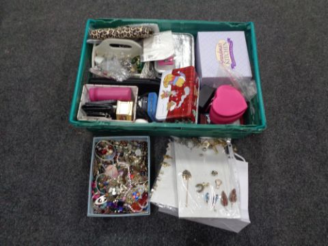 A box of a large quantity of jewellery boxes and assorted costume jewellery