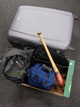 An Eminent luggage case together with a box containing a baseball bat, Berghaus holdall together with one other, a lawn balls bag.