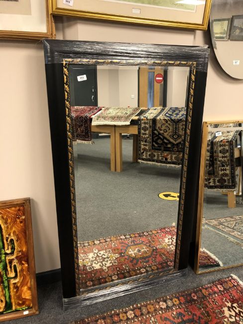 A 4' by 2' black and gold mirror