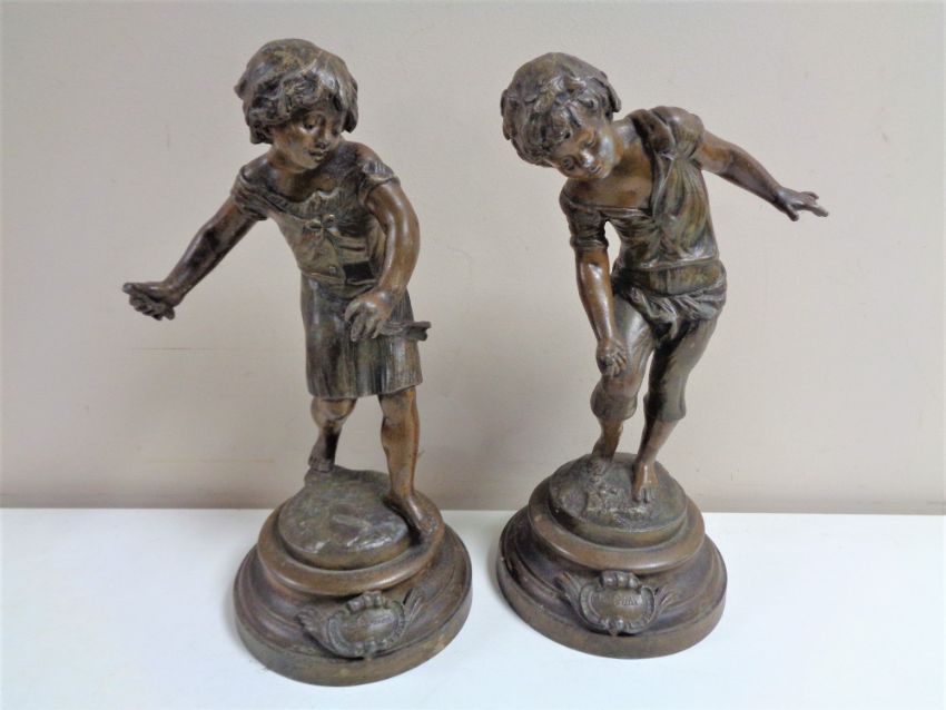 A pair of early twentieth century French spelter figures of children (a/f)
