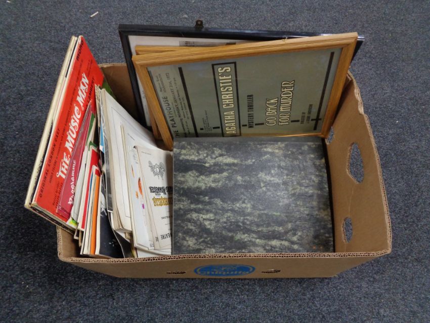 A box of framed theatre posters, magazines, programmes, together with a small quantity of LP's