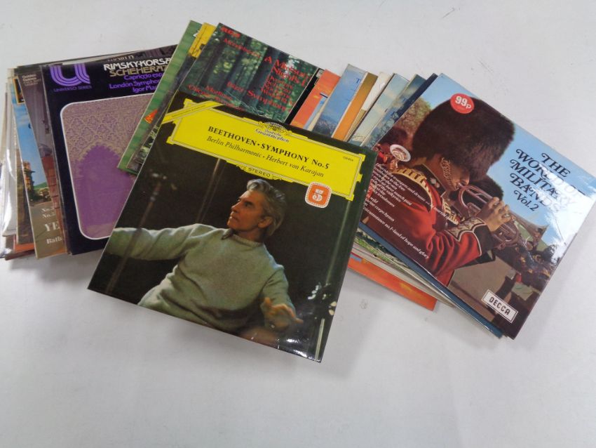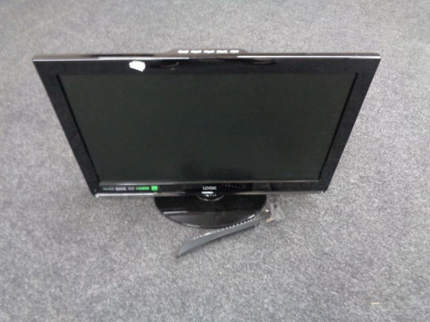 An Logik 26" LCD TV with remote together with a box containing a small quantity of LP's, classical etc