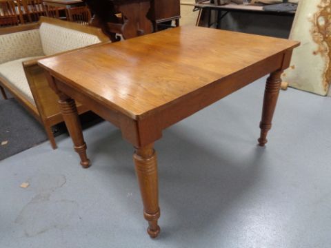 An early twentieth century oak dining table on tapered legs