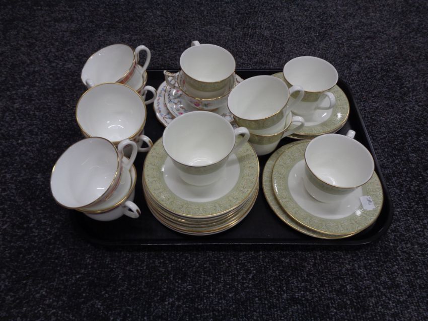 A tray of six Royal Doulton Sonnet china trios together with a further New Chelsea trio and six Royal Worcester teacups
