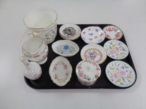 A tray of cabinet china to include, Royal Grafton, Minton and Wedgwood trinket dishes, Minton Haddon Hall planter and preserve pot etc
