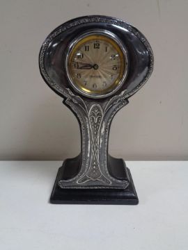 An Art Nouveau silver mounted mantel timepiece clock with Birmingham marks