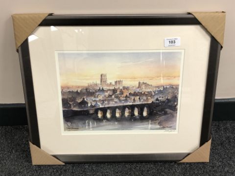 After Tom MacDonald : Old Durham, reproduction in colours, signed in pencil, 21 cm by 30 cm, framed.