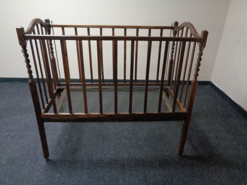 An Edwardian oak barley twist cot