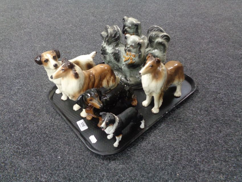 A tray containing antique and later dog ornaments to include Coopercraft (7).