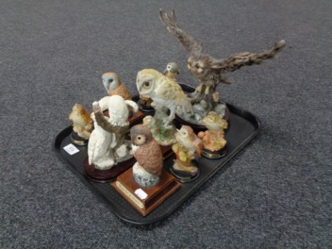 A tray containing ten owl ornaments to include Leonardo Artistic Collection etc.