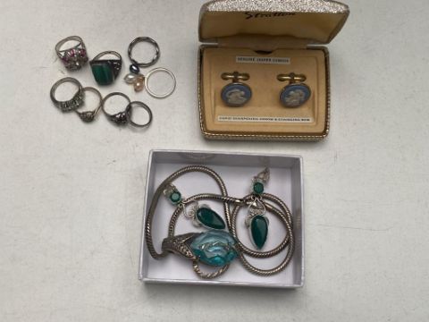 A quantity of assorted silver jewellery together with a pair of Wedgwood Jasperware cuff links.