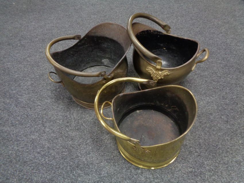 Three antique and later brass coal buckets