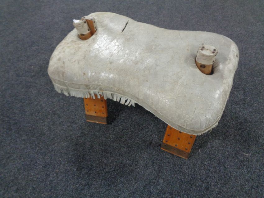 A camel stool with leather saddle