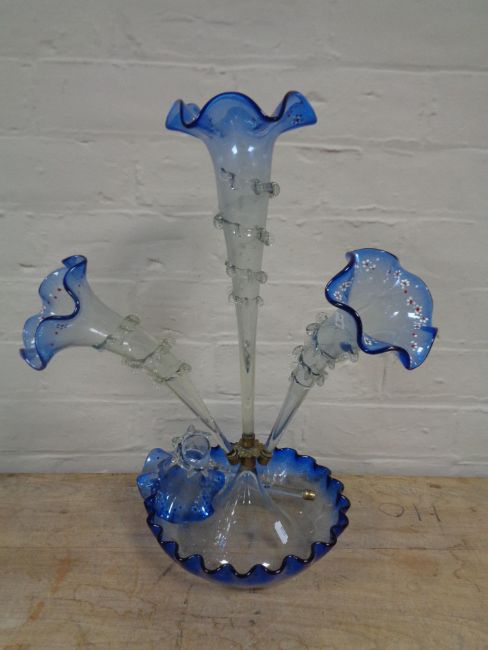 A nineteenth century blue glass four-way epergne (Af)