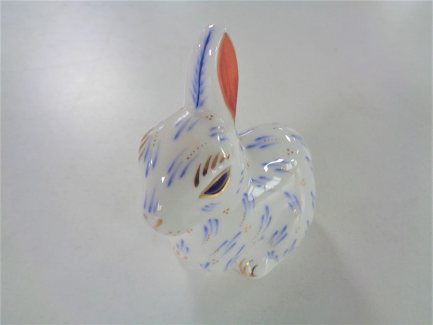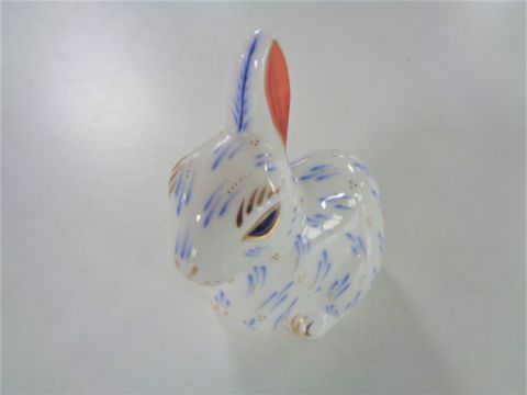 A Royal Crown Derby Snowy Rabbit paperweight with gold stopper.