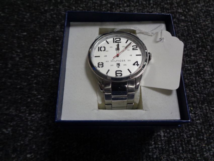 A Gentleman's stainless steel Tommy Hilfiger wrist watch, in retail box.