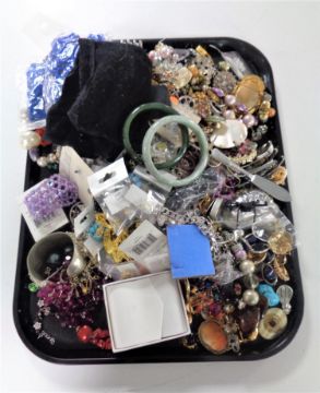 A tray containing a large quantity of assorted costume jewellery.
